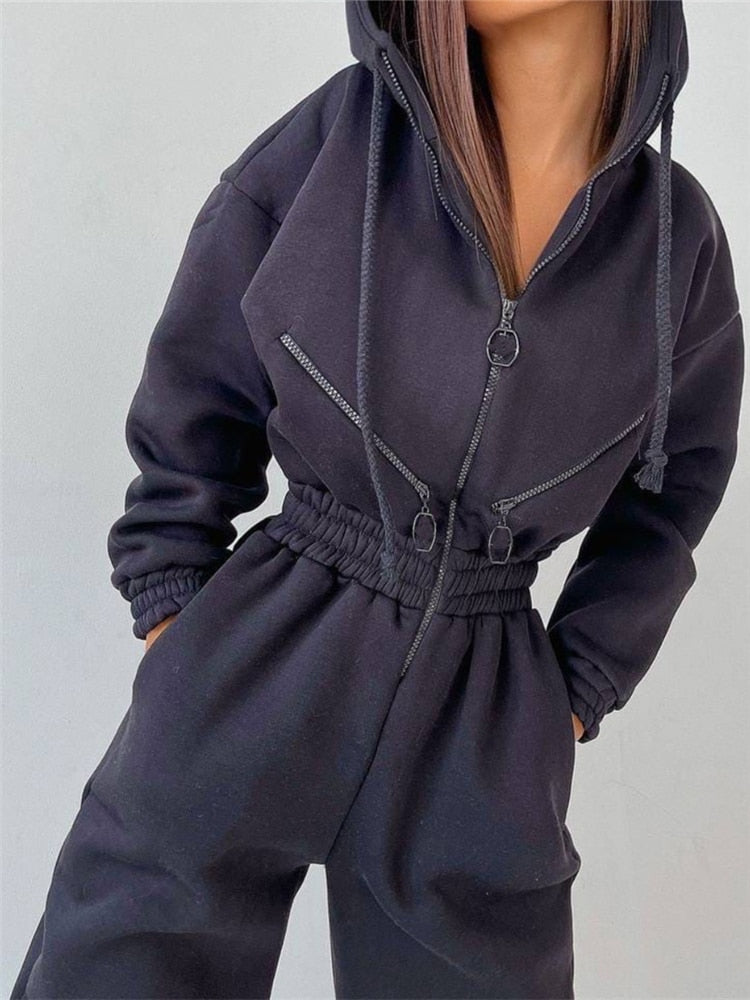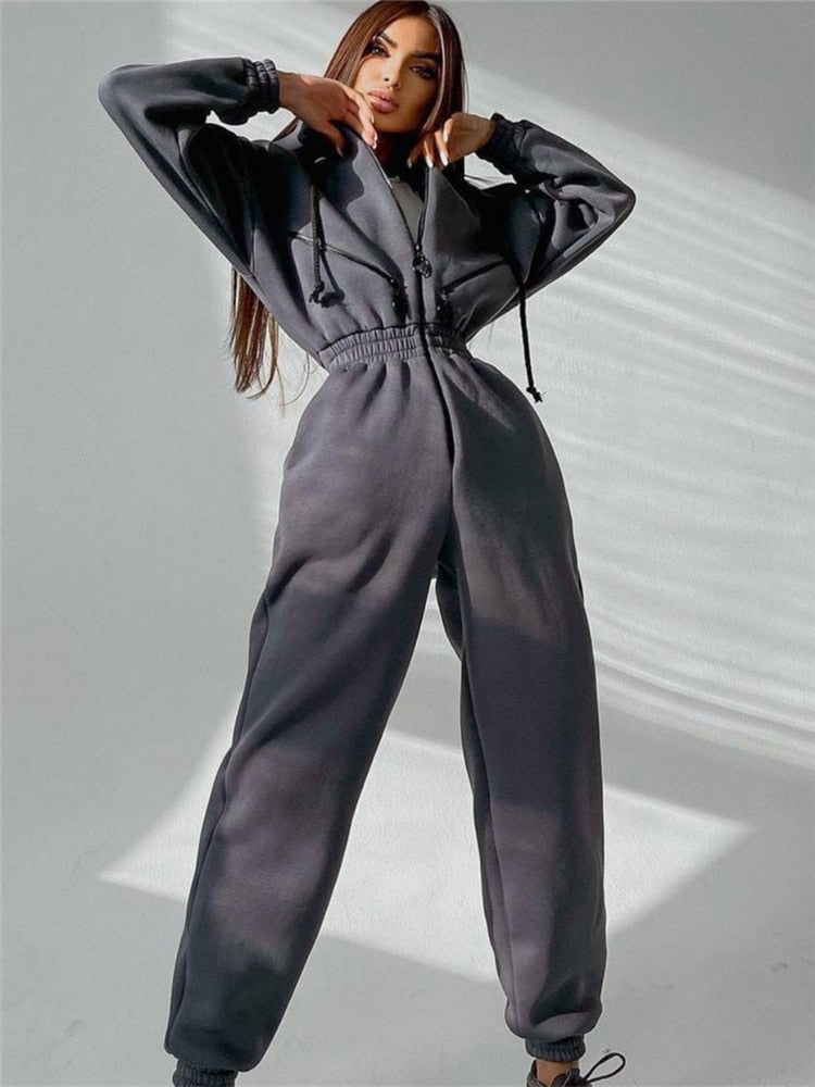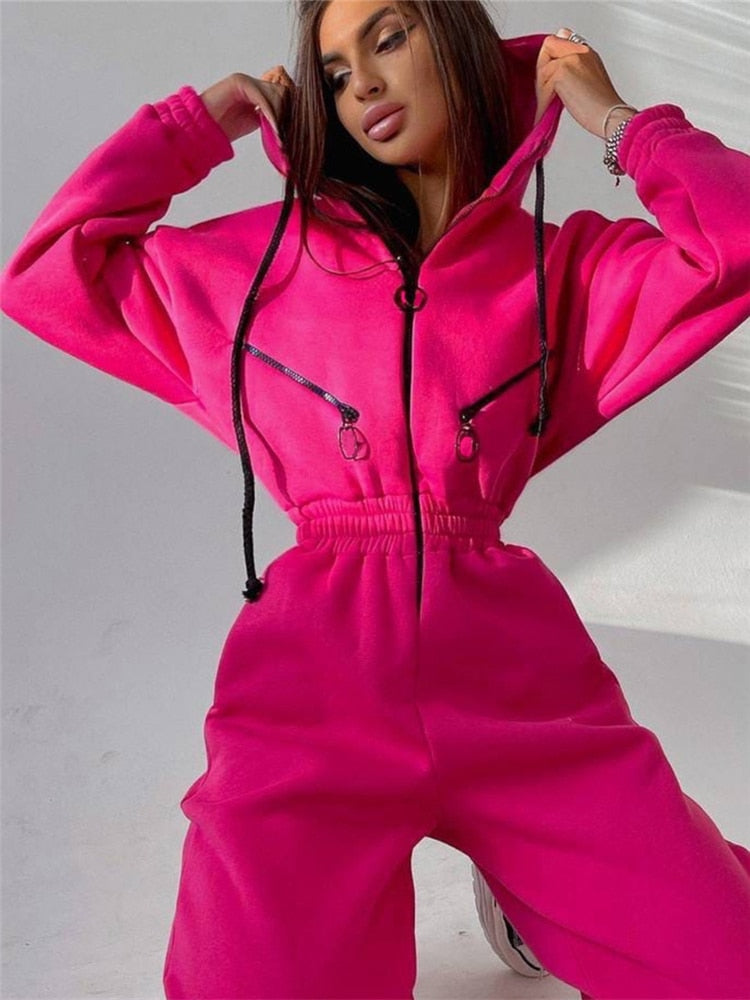 חליפת אוברול חורפית מדהימה עם כובע וגומי במותן