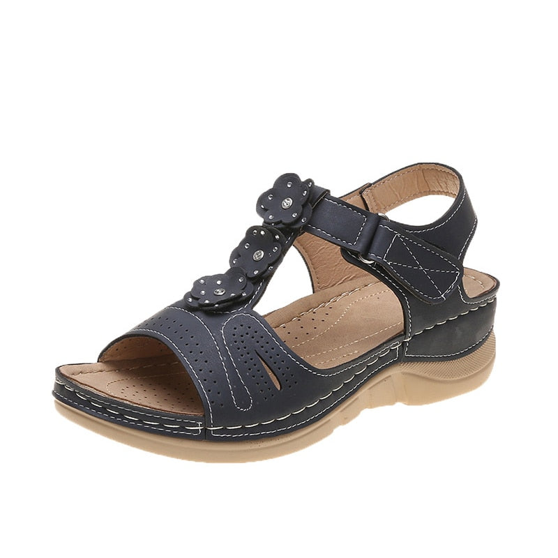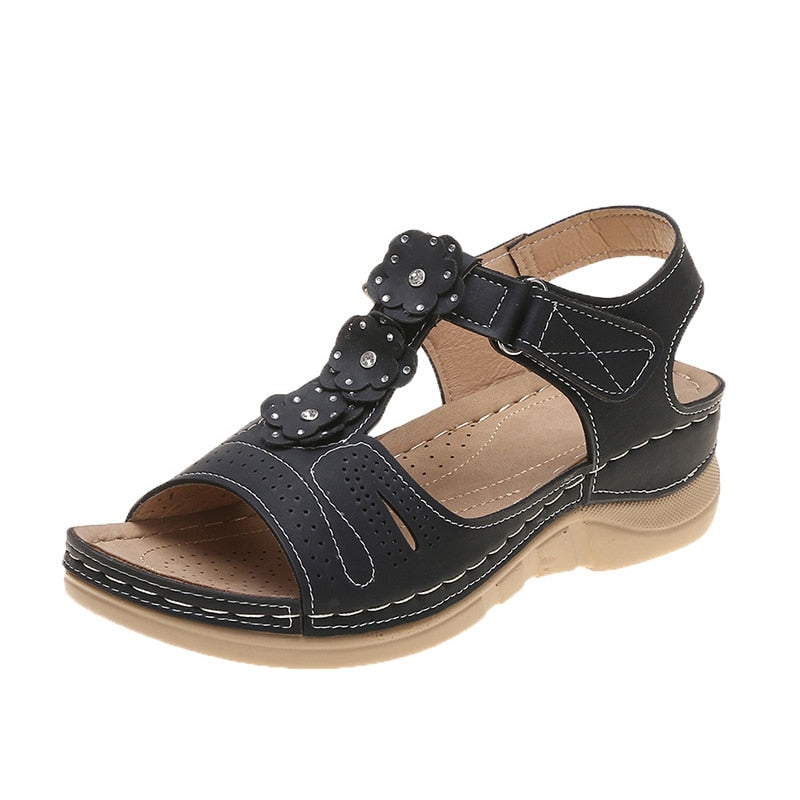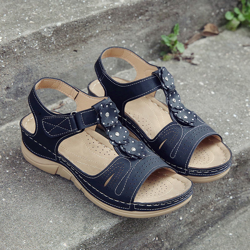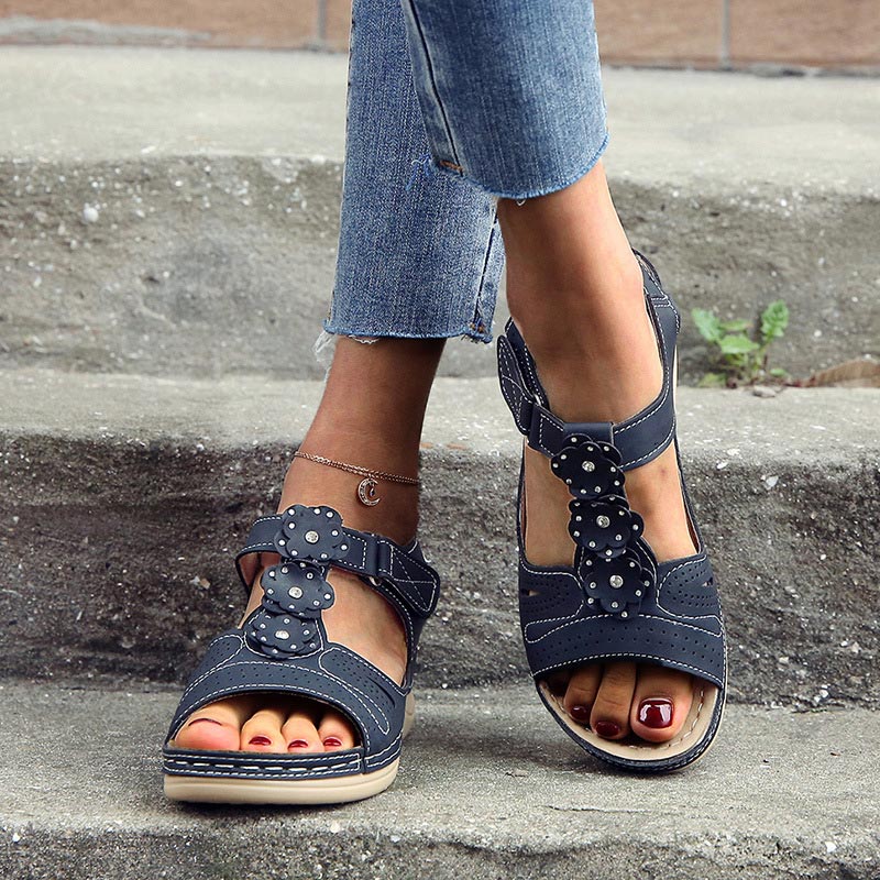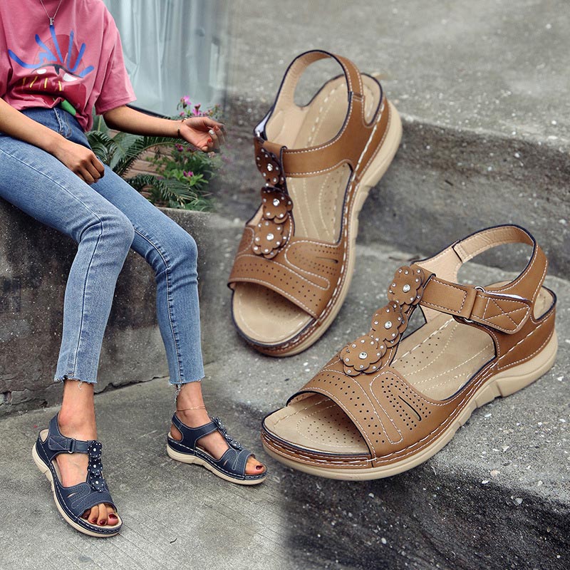 סנדלי אופנה בגרסה אורתופדית ואיכותית עם רצועת סנדל אשר ניתן להגדיל ולהקטין, עיצוב עם הטמאות פרחים אול אובר, סוליה איכותית עמידה נוחה ואלסטית במיוחד - מלאי מוגבל