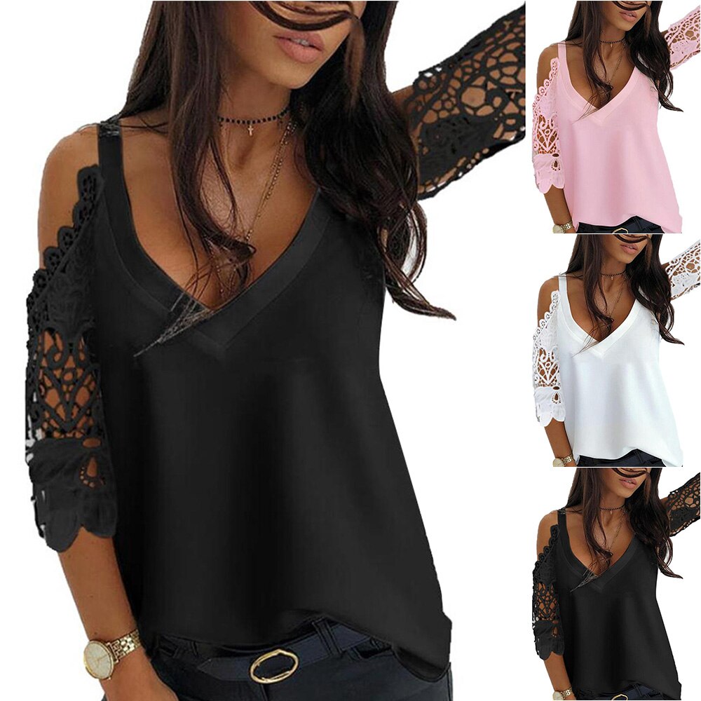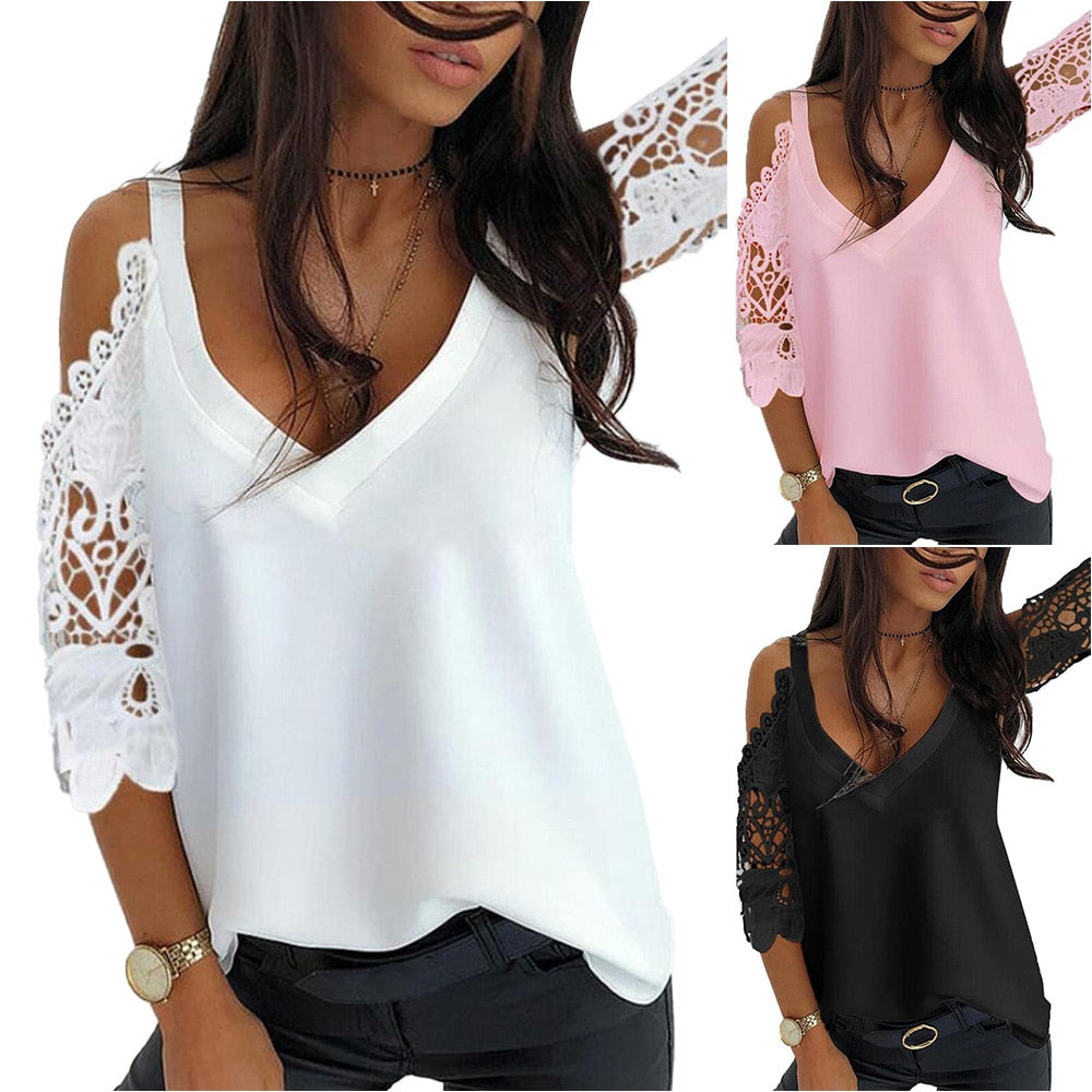 לנשים שאוהבות ייחודיות וקלאסיות - חולצת ספורט אלגנט משגעת עם צווארון וי עמוק וסקסי, כתפיות חשופות ושרוולים מעוטרים תחרה אול אובר מבד נעים ומשוחרר בגזרת אוברסייז נשפכת