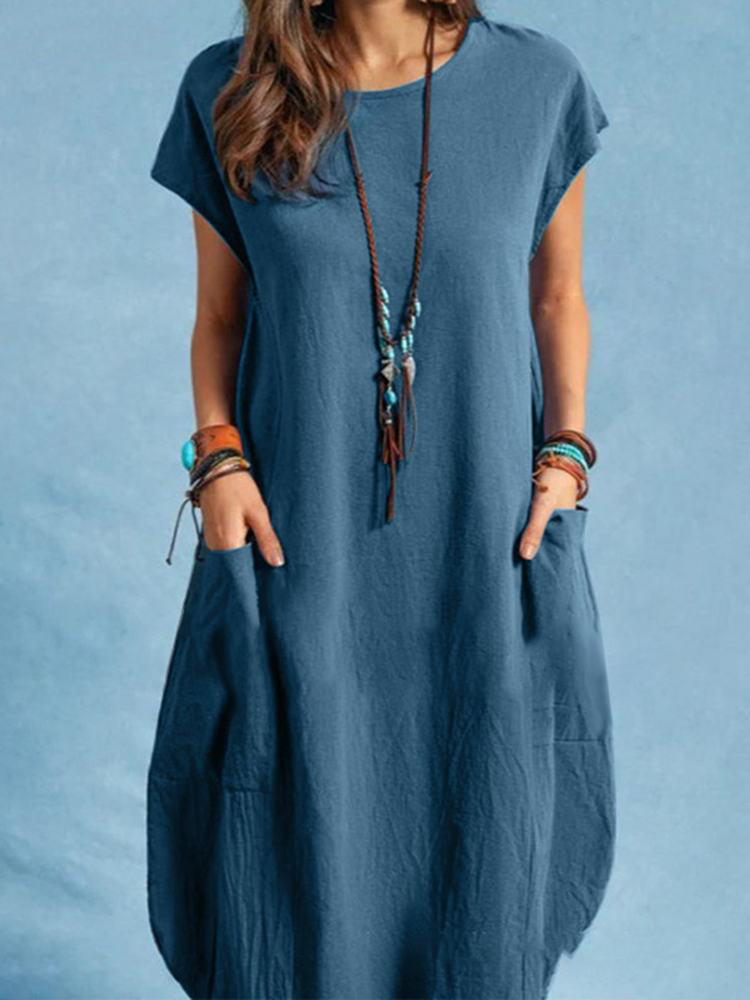 שמלת אוברסייז רחבה ונשפכת על הגוף מעוטרת כיסים nobu