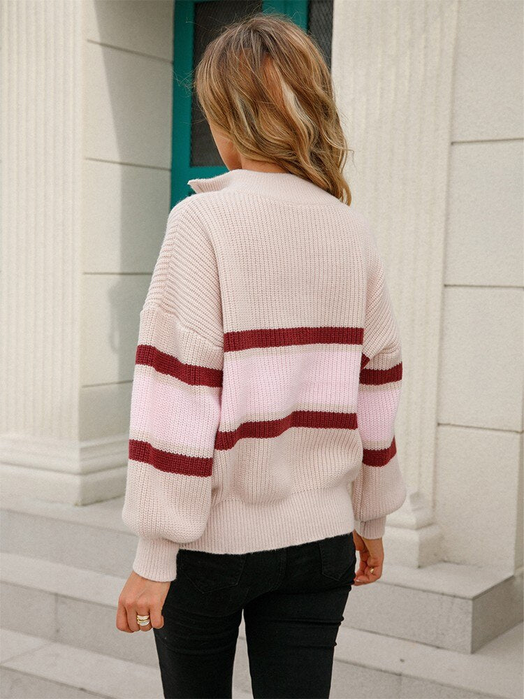 סריג מעלף בגזרה רחבה ונוחה בטקסטורת פסים עדינה ומיוחדת עם צווארון ריצ'רץ וסיומת בולטת בשרוולים