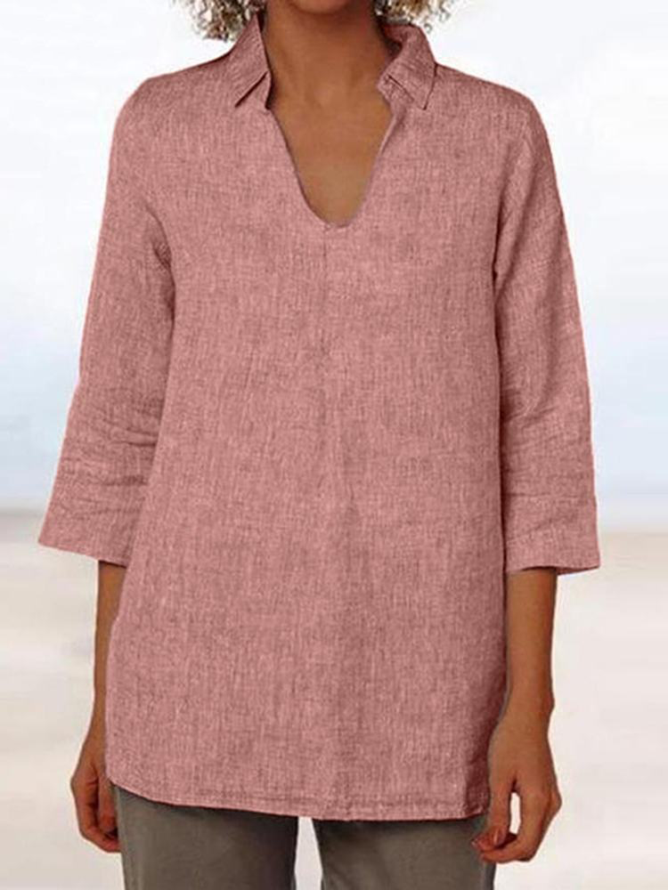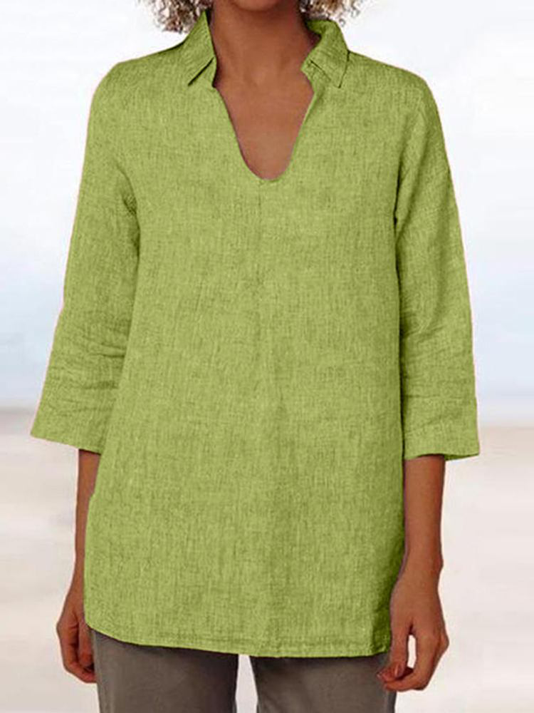 חולצת קז׳ואל בעיצוב סולידי ומהמם ובגזרת לוז נשפכת על הגוף עם שרוולי 3/4 וצווארון איטלקי מורחב