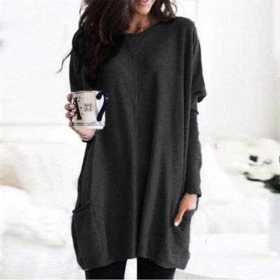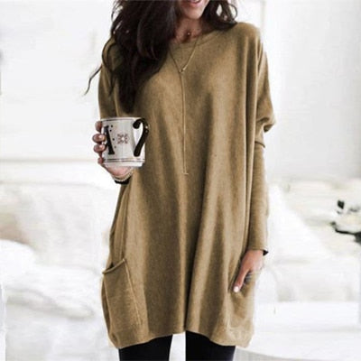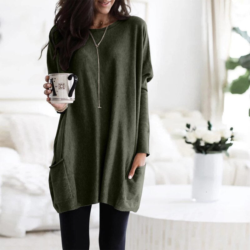 חולצת טוניקה חורפית ושופעת עם כיסים KISI