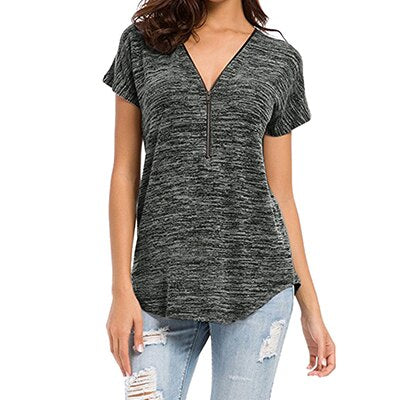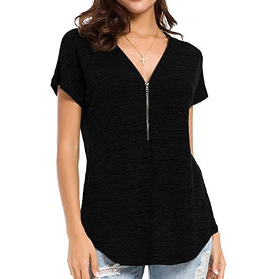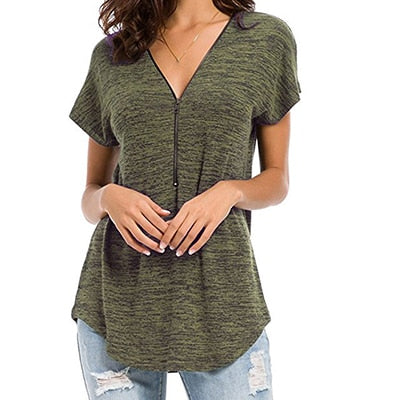 חולצת טוניקה נעימה ושימושית בגזרת אוברסייז נשפכת על הגוף עם סיומת טוניקה ארוכה ושופעת, שרוולי ענן רחבים, צווארון וי עמוק עם רוכסן זיפר מעוצב למראה ספורט אלגנט המתאים לכל הופעה