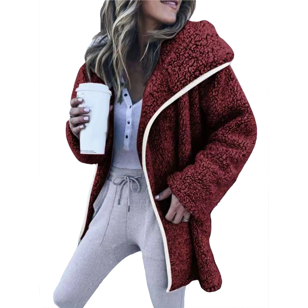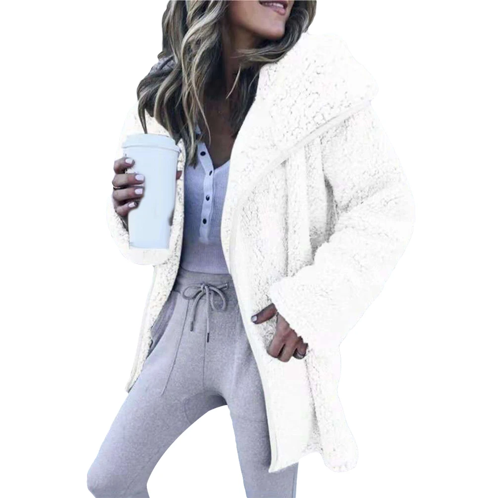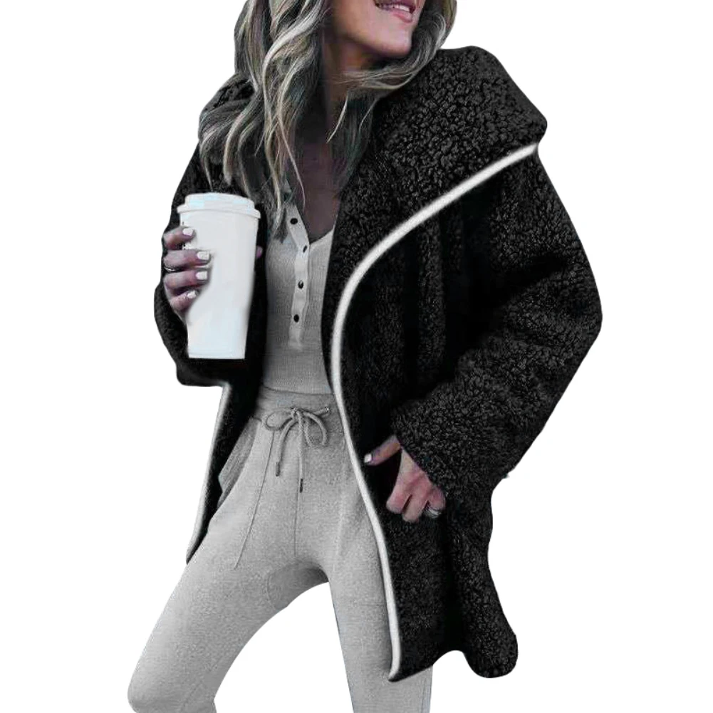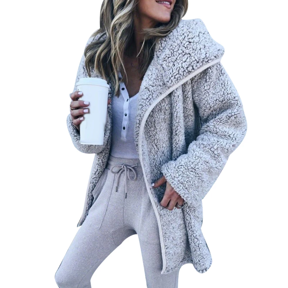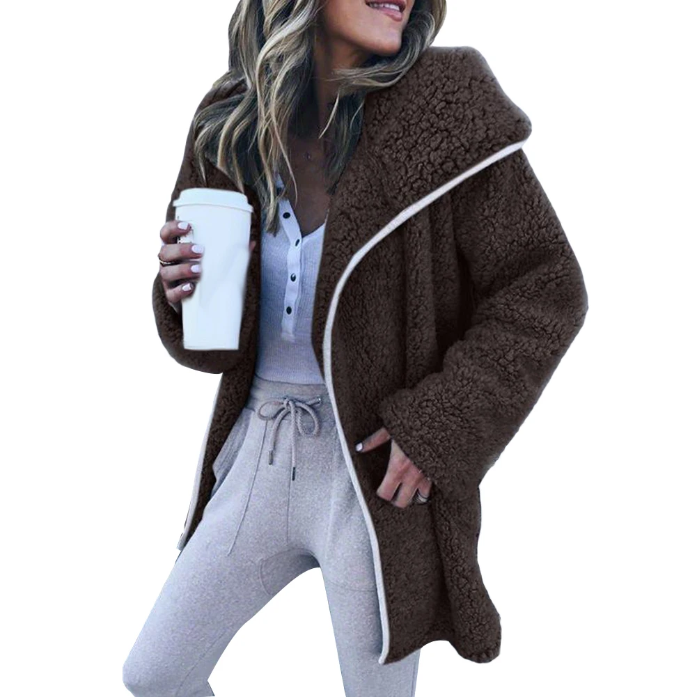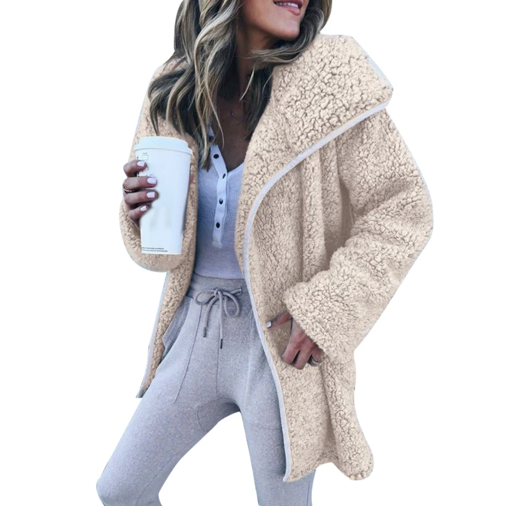 Teddy Coat Women Fluffy Jacket Autumn Fur Lamb Plush Thick Casual Solid Colors Winter Faux Fur Coat Fleece Lapel Overcoat futro