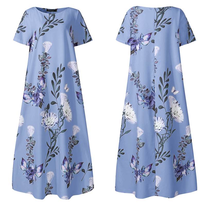 שמלת מקסי קלאסית ושימושית במיוחד בעיצוב פרחים קלאסי ומעודן, צווארון סגור בסגנון איטלקי, שרוולי ענן נשפכים, גזרת אוברסייז בסיומת טוניקה מקסי למראה נוח אופנתי ומשוחרר