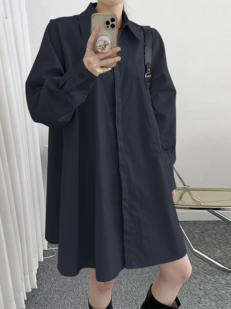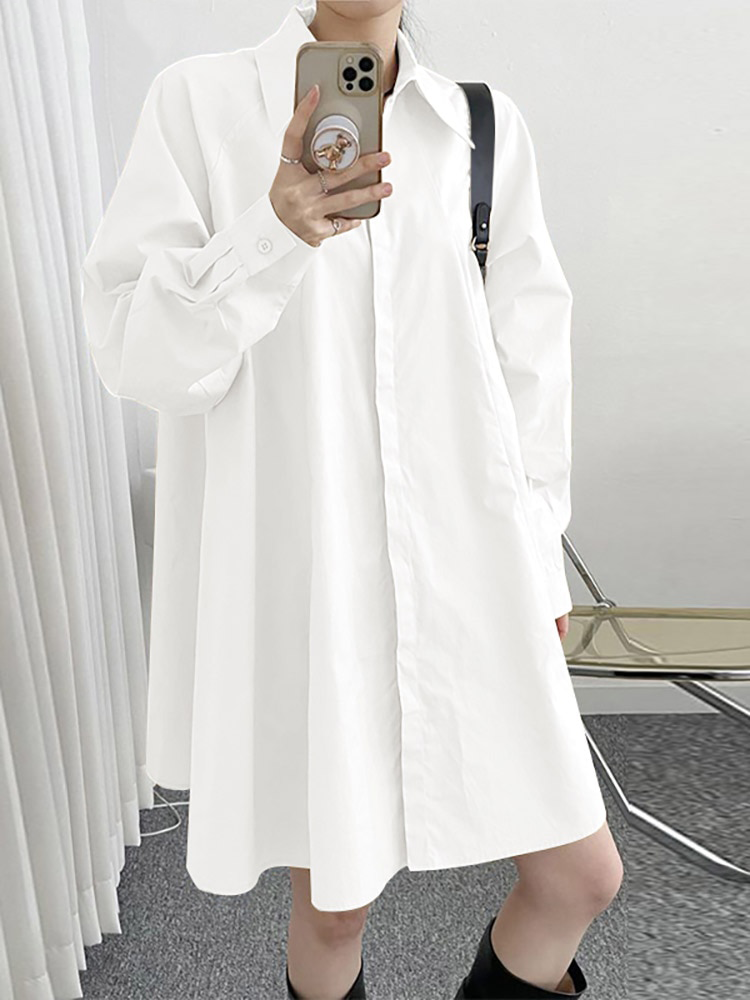 שמלת לוס בגזרת אוברסייז במראה אלגנטי ומרשים סופר מיוחדת ונוחה עם רכיסת כפתורים אול אובר וצווארון איטלקי