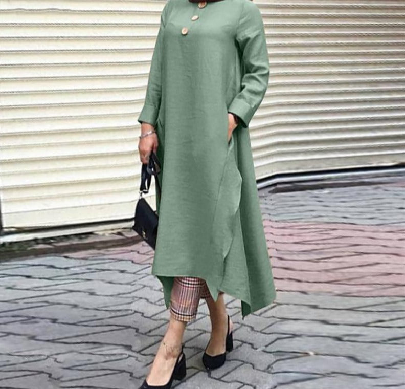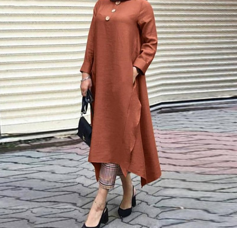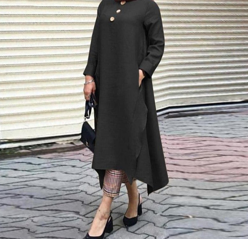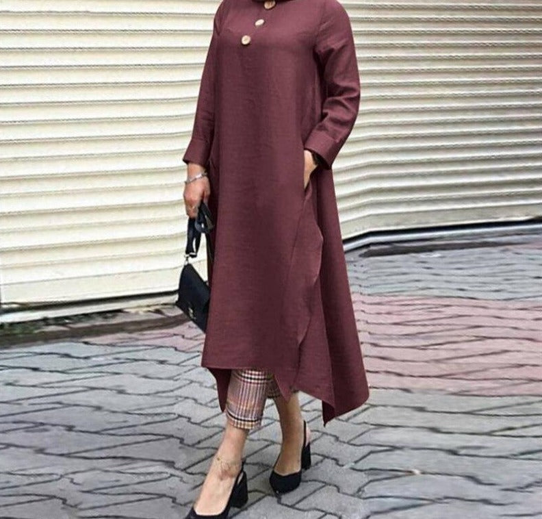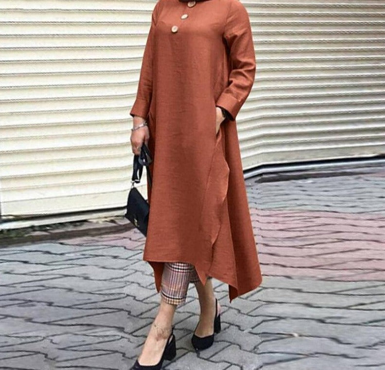 שמלת מקסי קלאסית ומסוגננת בסיומת טוניקה נשפכת. גזרת אוברסייז רחבה ונוחה במיוחד. צווארון קלאסי עם רכיסת כפתורים מעודנת. צמד כיסים נוחים לשימוש בצדדים. מגוון צבעים רחב ומהמם