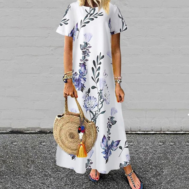 שמלה פרחונית בעיצוב קלאסי בגזרת מקסי נשפכת FLA